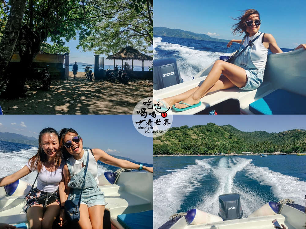 到了Teluk Nara碼頭,我們就乘坐私人快艇前往Gili T啦!如果你也計劃和我們一樣一下飛機就直奔小島,請記得一定要穿短褲拖鞋,因為上下船都會弄濕哦。從碼頭到Gili T只需短短五分鐘。