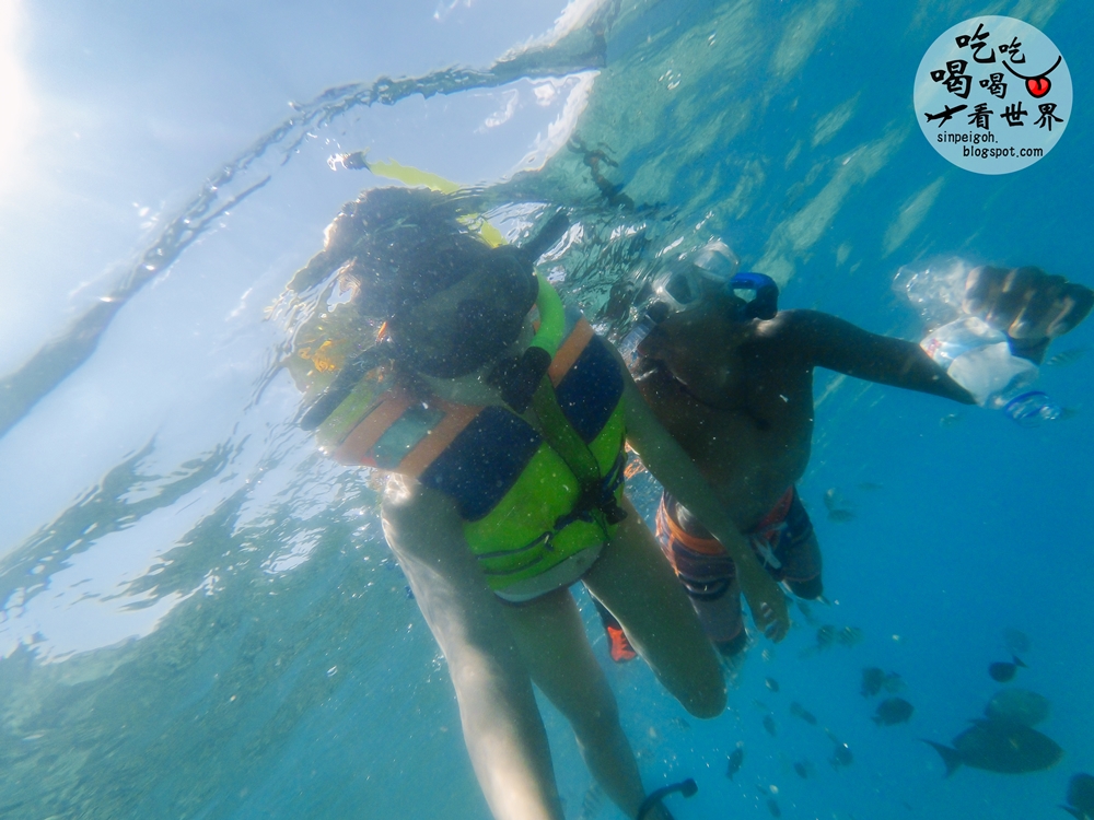 當當〜我想大家去浮淺最想看到就是這樣的畫面吧!多多的魚湧在你面前,超酷的〜〜船上也有提供麵包餵食,這樣才可以拍到魚滿滿的畫面❤