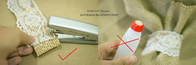 由於我家裡沒有萬能膠,所以最後用釘書機很方便!